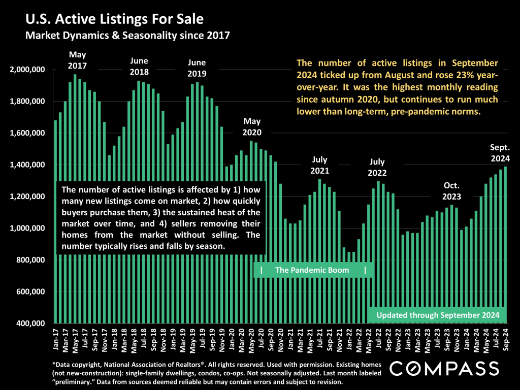 - The number of active listings ticked up from August, and jumped 23% from September 2023, hitting its highest count in 4 years. Price reductions were also up 23% year-over-year.