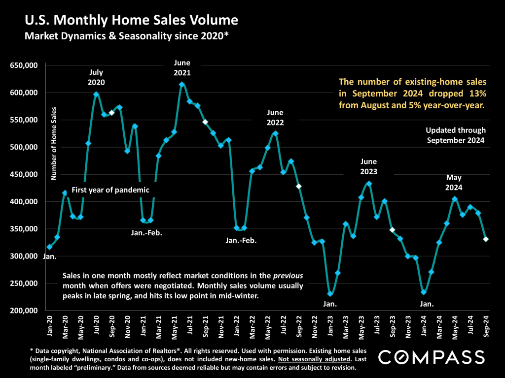 - U.S. existing-home sales in September declined 13% from August and 5% year-over-year.